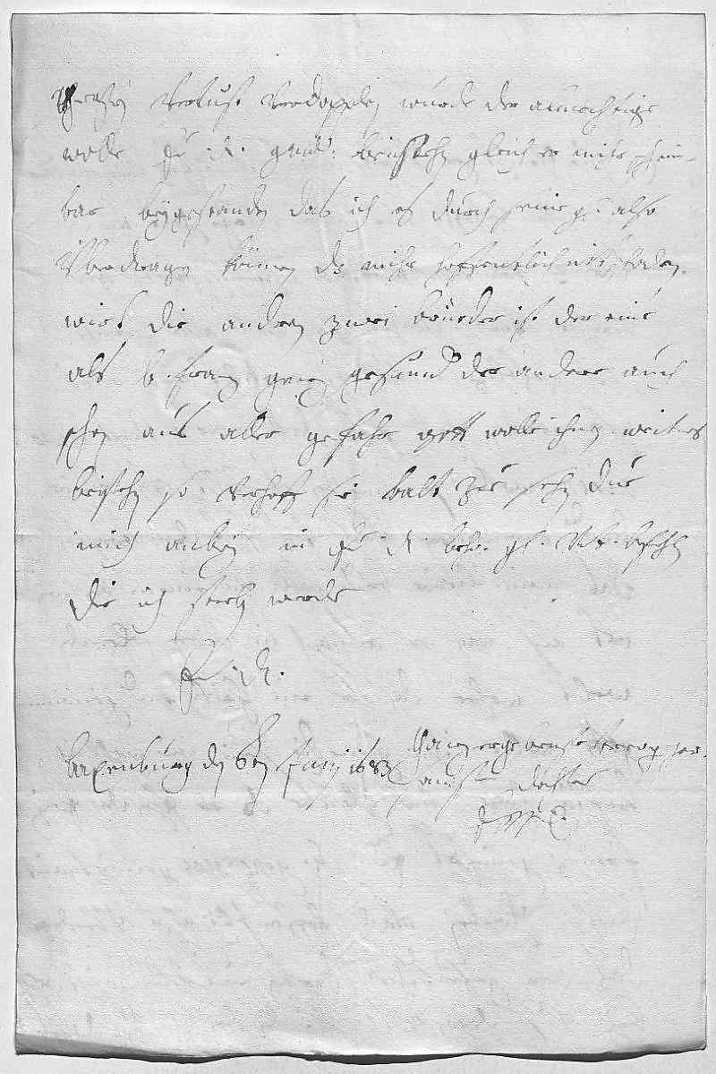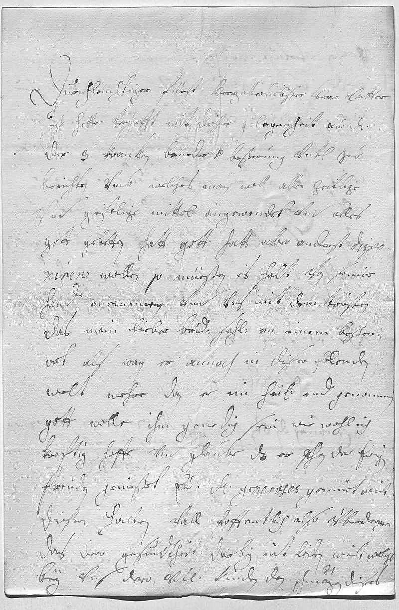 0001Durchleüchtiger Fürst, herzallerliebster herr vatter 0002Ich hette verhofft, mit dießer gelegenheit ewer Durchlaucht 0003der 3 kranken brüeder Liebden beßerung vnterdehnigst zue 0004berichten, vmb welches man woll alle zeitlige 0005vnd geistlige mittel angewendet vnd alles 0006gott gebetten hatt. Gott hatt aber anderst dispo- 0007niren wollen, so müeßen es halt von seiner 0008hand anemmen vnd vns mit dem trösten, 0009das mein lieber bruder sehlig an einem beßern 0010ort, als wan er annoch in diser elenden 0011welt wehre, dan er ein heiliges end genommen. 0012Gott wolle ihm genedig sein, wie wohl ich 0013kreftig hoffe vnd glaube, das er schon der ewigen 0014freüden genießet. Ewer Durchlaucht generoses gemüet wirt 0015diesen harten vall hoffentlich also überdragen, 0016das dero gesundtheit darbey nit leiden wirt, welchs 0017bey vns, dero vnterdehnigsten kindern, den schmerzen dises