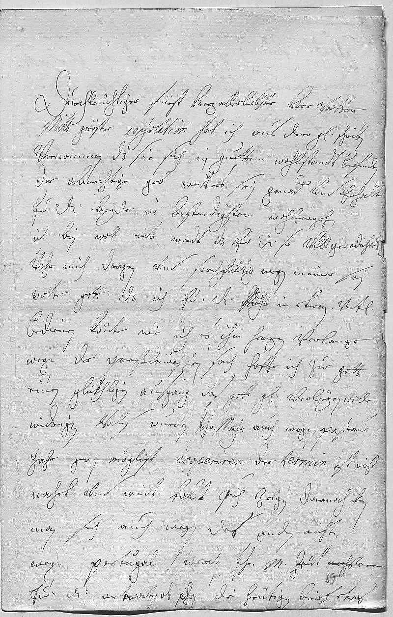 0018schpaht kommen. Es haben aber ihr Mayestät vnd alle 0019annoch nit vohr rahtsamb befunden, das mein 0020bruder selbsten einige reis vohrnemmen soll, 0021woll aber, das iemandt möge geschikt werden, 0022dieses werkh zue negotiren. Ihr Mayestät werden 0023schon alles weitleufig schreiben. Gott gebe ein guetten 0024schluß in der pfälzischen sach. Wan es noch darbey 0025bleiben solt, das bruder Carl noch nit in Portugal 0026oder Schpanien einige reis vohrnemmen solt, wie alle 0027vermeinen, das es nit rahtsamb sey, so werden ewer Durchlaucht 0028verners gnädig befehlen, ob er nit etwan vnterdeßen 0029auf ein zeit zue der armée solte, dort etwas 0030zue sehn, welches ihm auch, wan er solt in Por- 0031tugal kommen, nit vntauglich vnd auch glorios 0032sein möchte, das er von der armée dise reis 0033antrettete. Der Stratman wirt ewer Durchlaucht hierin 0034weitleüfiger berichten. Erwarte dero gnädigen befehl, 0035vnd weil es schon zimlich schpaht, also mus