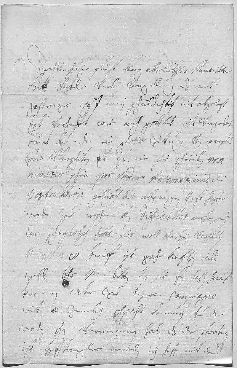 0001Durchleüchtiger Fürst, herz allerliebster herr vatter 0002Bitt vnterdehnigst vmb vergebung, das mit 0003gestriger post mein schuldichkeit nit abgelegt, 0004hab verhofft, wie auch gottlob nit vergebens, 0005heünt ewer Durchlaucht ein guette zeitung von Preslaw 0006zue überschiken. Es ist, wie sie schreiben, vna- 0007nimiter, schier per modum aclamationis, die 0008postulation gelükhlich abgangen. Izt hoffe, 0009werde zue Rohm kein difficultet mehr sein. 0010Der Schafcotsch hatt sich woll darbey verhalten. 0011Pater Marco brief ist gahr kreftig, will 0012woll ihr Mayestät bitten, das sie ihn laßen heraus 0013kommen, aber zue diser campagne 0014wirt er zimlich schpaht kommen. Ewer Durchlaucht 0015werden schon vernommen haben, das der Stratman 0016ist Hoffkanzler worden, ich hoff mit dem