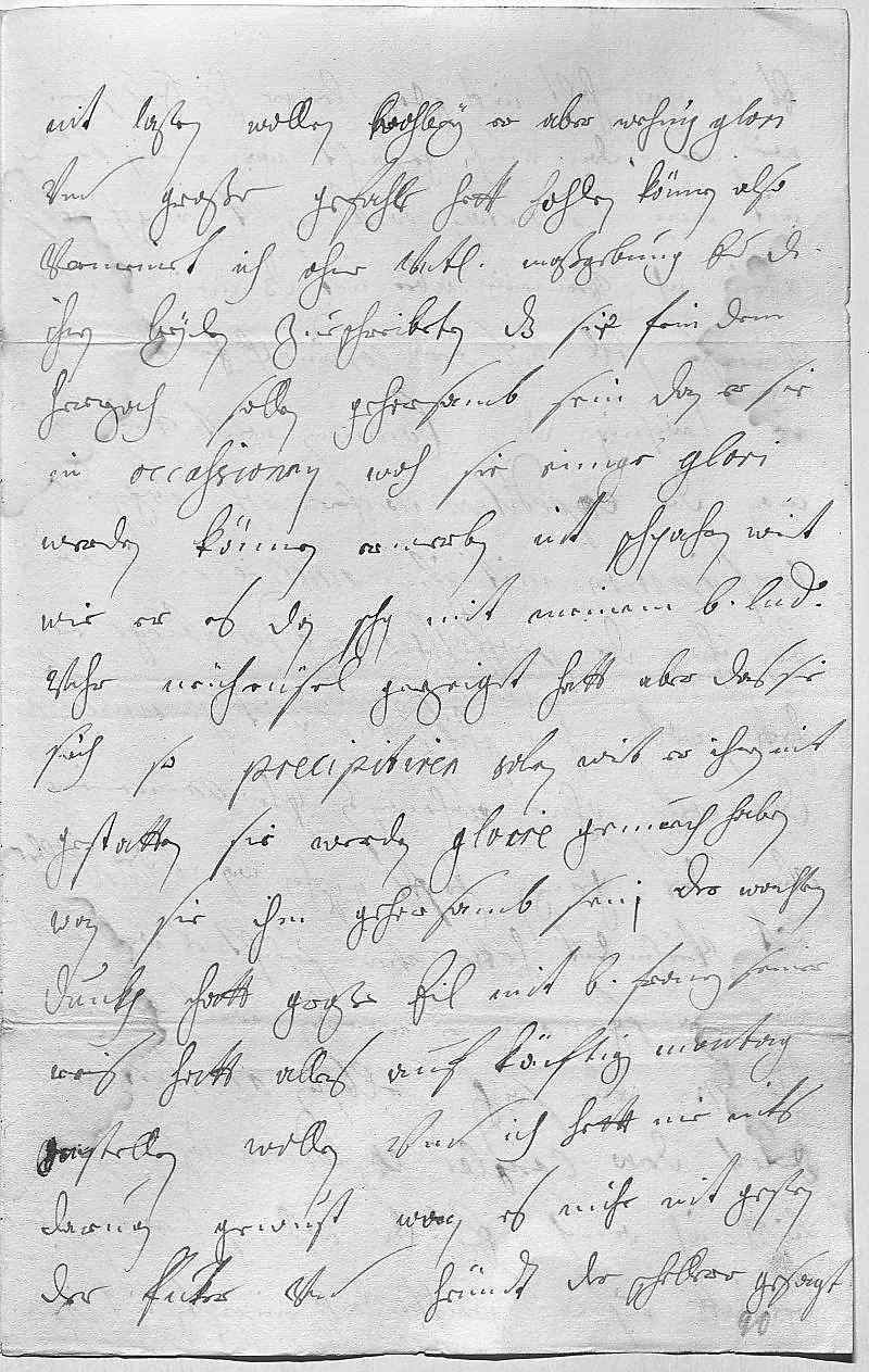 0035nit laßen wollen, wohbey er aber wehnig glori 0036vnd große gefahr hett hohlen können. Also 0037vermeinet ich ohne vnterdehnigste maßgebung, wenn ewer Durchlaucht 0038ihnen beyden zueschreibeten, das sie fein dem 0039Herzoch sollen gehorsamb sein, dan er sie 0040in occassionen, woh sie einige glori 0041werden können erwerben, nit schpahren wirt, 0042wie er es dan schon mit meinem bruder Ludwig 0043vohr Neüheüsel gezeiget hatt, aber das sie 0044sich so precipitiren solen, wirt er ihnen nit 0045gestatten. Sie werden gloire genuech haben, 0046wan sie ihm gehorsamb sein. Der Wachten- 0047dunkh hatt große eil mit bruder Franz seiner 0048reis, hatt alles auf könftigen montag 0049anstellen wollen, vnd ich hett nie niks 0050daruon gewust, wan es mihr nit gestren 0051der Fuker vnd heündt der Schellerer gesagt.