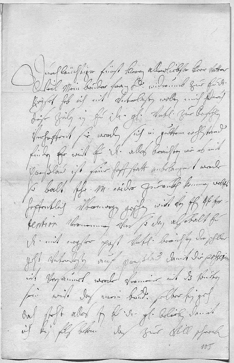 0001Durchleüchtiger Fürst, herz allerliebster herr vatter 0002Weil mein bruder Franz Liebden widerumb zue ewer Durchlaucht 0003reyset, hab ich nit vnterlaßen wollen, mich durch 0004dise zeilen in ewer Durchlaucht gnaden vnterdehnigst zue befehlen, 0005verhoffent, sie werden sich in guettem wohlstand 0006finden. Er wirt ewer Durchlaucht alles berichten, wie es mit 0007Preßlaw ist. Seine hoffstatt anbelangent werde, 0008so balt ihr Mayestät wider zueruckh kommen, welchs 0009hoffentlich übermorgen geschen wirt, von ihnen ihr in- 0010tention vernemmen vnd so dan alsobalt ewer 0011Durchlaucht mit negster post vnterdehnigst berichten. Der Scheller 0012geht vnterdeßen auf Preßlau, damit die possesion 0013nit versaumet werde. Vermeine nit, das vonöten 0014sein wirt, das mein bruder selber hin geh, 0015doch steht alles in ewer Durchlaucht gnädigem belieben. Damit 0016ich kein fils bekom, das zue vill schreiben due,