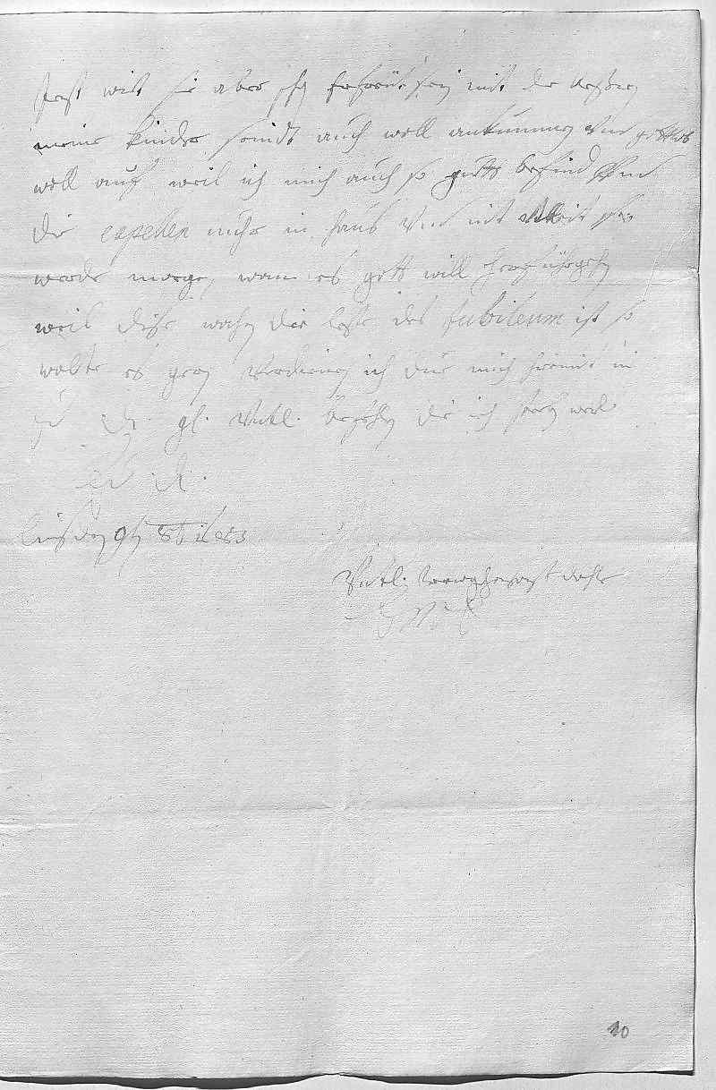 0042Izt wirt sie aber schon erfreüt sein mit der beßren. 0043Meine kinder seindt auch woll ankummen vnd gottlob 0044woll auf. Weil ich mich auch so guett befind vnd 0045die capellen nuhr in haus vnd nit weit sey, 0046werde morgen, wann es gott will, herführgehen, 0047weil dise wochen die leste des jubileum ist, so 0048wolte es gern verdienen. Ich due mich hiermit in 0049ewer Durchlaucht gnade vnterdehnigst befehlen, die ich sterben werd 0050ewer Durchlaucht 0051vnterdehnigst trewgehorsamst dochter 0052EMT 0053Lins den 9ten octobris 1683