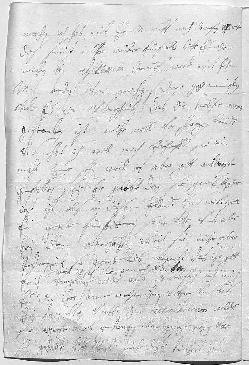 0015machen. Ich hab mit ihr Mayestät niks noch darfon geret, 0016das seint nuhr weibereinfäll. Bitt, ewer Durchlaucht 0017machen kein reflexion drauf, werd mit ihr 0018Mayestät reden vnd nachgens dero gnädigste meinung 0019vnterdehnigst ewer Durchlaucht überschreiben. Das die liebste Mamer 0020gestorben, ist mihr woll von herzen leidt, 0021vnd hab ich woll noch verhofft, sie ein 0022mahl zue sehn. Weil es aber gott anderst 0023gefallen, sey er gelobt, dan sie gewis beßer 0024jezt ist als in disem elendt vnd wirt woll 0025ein große fürbitterin sein vohr vns alle 0026bey dem allerhöchsten. Weil sie mihr aber 0027jederzeit so große lieb erzeigt, das ihr gott 0028ewich vergelten, weil ich es nie genuch duen kan, wolle, also vntersteh ich mich, 0029ewer Durchlaucht ihre arme weisen, ihren vettern vnd bas, 0030die Hamilton, vnterdehnigst zue recomendiren, für welche 0031sie große lieb gedragen vnd große sorg vohr 0032sie gehabt. Bitt vnterdehnigst, mihr dise künheit zue