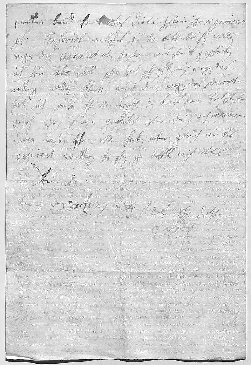 0059meinem bruder Carl das dietrichsteinische regiment 0060gnädigst conferirt, welches ewer Durchlaucht vnterdehnigst berichten wollen. 0061Wegen des canonicat von Baßau wirt heütt geschriben, 0062ich hör aber, soll schon zue schpaht sein. Wegen des 0063Redinghoven wollen ihr Mayestät auch duen. Wegen des priorat 0064hab ich aus ihr Mayestät befehl den brif dem botschafter 0065durch den Fürsten geschikt vnd die sach recomen- 0066diren laßen, ihr Mayestät haben aber gleich wie es 0067vacirent worden es schon getan . Befehl mich vnterdehnigst 0068ewer Durchlaucht 0069vnterdehnigst gehorsamste dochter 0070EMT 0071Lins den 24ten junij 1684