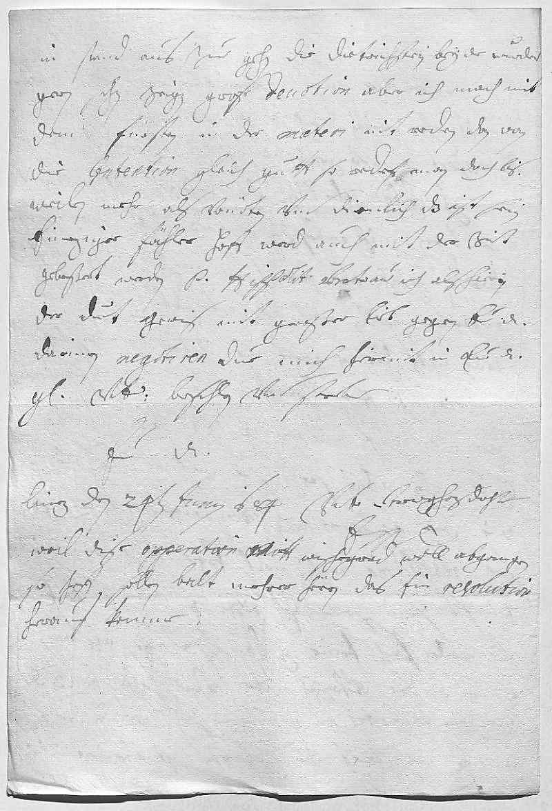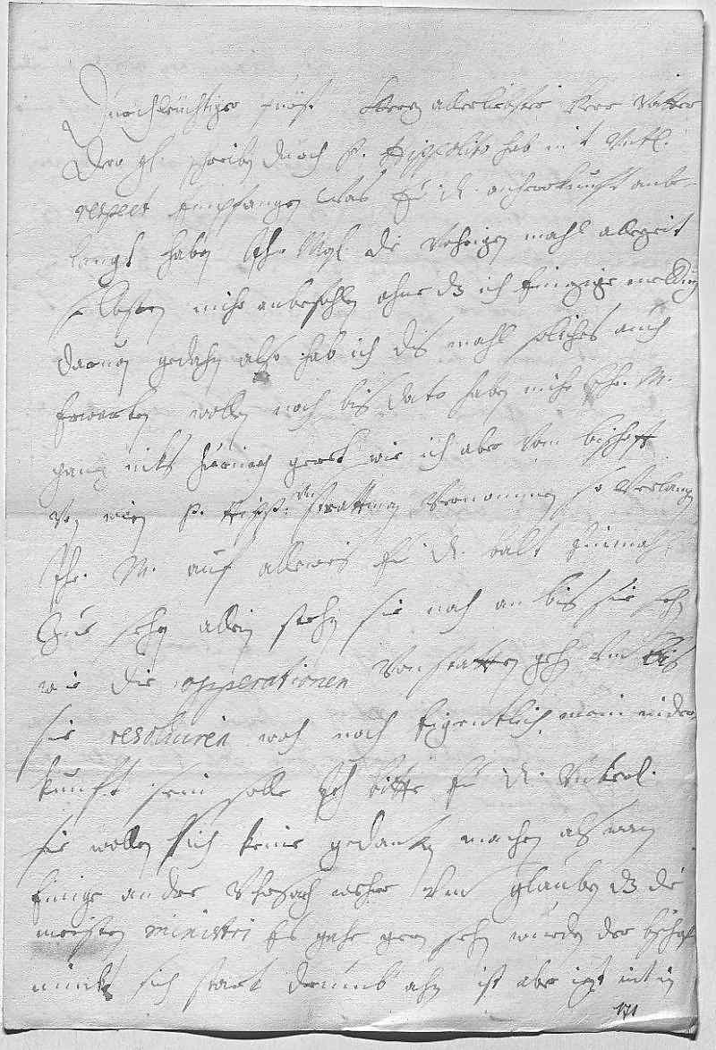 0001Durchleüchtiger Fürst, herz allerliebster herr vatter 0002Dero gnädiges schreiben durch Pater Hippolito hab mit vnterdehnigstem 0003respect empfangen. Was ewer Durchlaucht anherokunft anbe- 0004langt, haben ihr Mayestät die vohrigen mahl allezeit 0005selbsten mihr anbefohlen, ohne das ich einzige meldung 0006daruon gedahn, also hab ich dis mahl soliches auch 0007erwarten wollen. Noch bis dato haben mihr ihr Mayestät 0008ganz niks hiernach geret, wie ich aber vom Bischoff 0009von Wien, Pater Hippolito vndStrattman vernommen, so verlangen 0010ihr Mayestät auf alleweis, ewer Durchlaucht balt einmahl 0011zue sehen, allein stehn sie noch an, bis sie sehn 0012wie die opperationen von statten gehn vnd bis 0013sie resoluiren, woh noch eigentlich mein nider- 0014kunft sein solle. Ich bitte ewer Durchlaucht vnterdehnigst, 0015sie wollen sich keine gedanken machen, als wan 0016einige andre vhrsach wehre vnd glauben, das die 0017meisten ministri es gahr gern sehn wurden. Der Bischof 0018nimbt sich stark drumb ahn, ist aber izt nit in