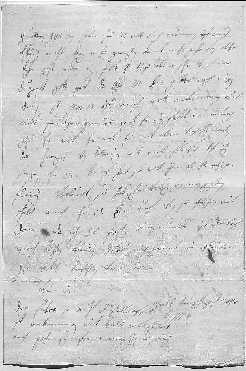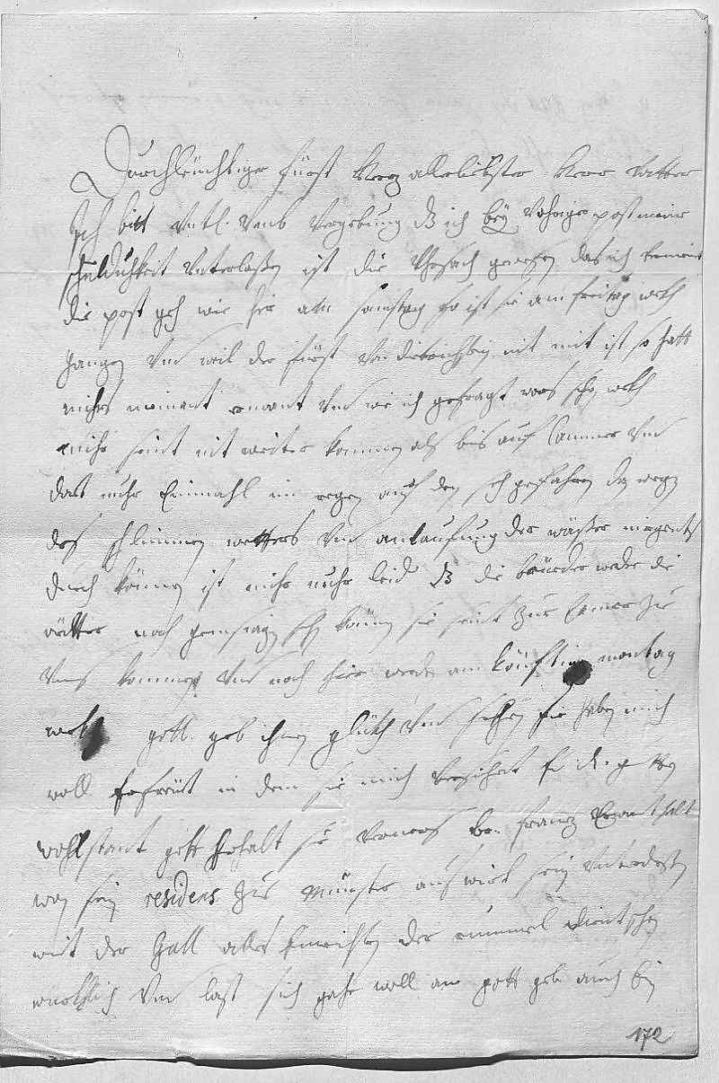 0001Durchleüchtiger Fürst, herzallerliebster herr vatter 0002Ich bitt vnterdehnigst vmb vergebung, das ich bey vohriger post meine 0003schuldichkeit vnterlaßen, ist die vhrsach gewesen, das ich vermeint, 0004die post geh wie hier am samstag, so ist sie am freitag wekh 0005gangen, vnd weil der Fürst von Dietrichstein nit mit ist, so hatt 0006mihrs niemant ermant, vnd wie ich gefragt, wars schon wekh. 0007Mihr seint nit weiter kommen als bis auf Cammer, vnd 0008dort nuhr einmahl im regen auf den seh gefahren, dan wegen 0009des schlimmen wetters vnd anlaufung der wäßer nirgents 0010durch können. Ist mihr nuhr leid, das die brüeder weder die 0011ördter noch gemsjagen sehn können, sie seint zue Camer zue 0012vns kommen vnd noch hier, werden am könftigen montag 0013wekh. Gott geb ihnen glükh vnd segen, sie haben mich 0014woll erfreüt, in dem sie mich versichert ewer Durchlaucht gutten 0015wohlstant, gott erhalt sie verners. Bruder Franz erwart halt, 0016wan sein residens zue Münster aus wirt sein, vnterdeßen 0017wirt der Gall alles einrichten. Der Rummel dient schon 0018würkhlich vnd last sich gahr woll an, gott gebe auch ein