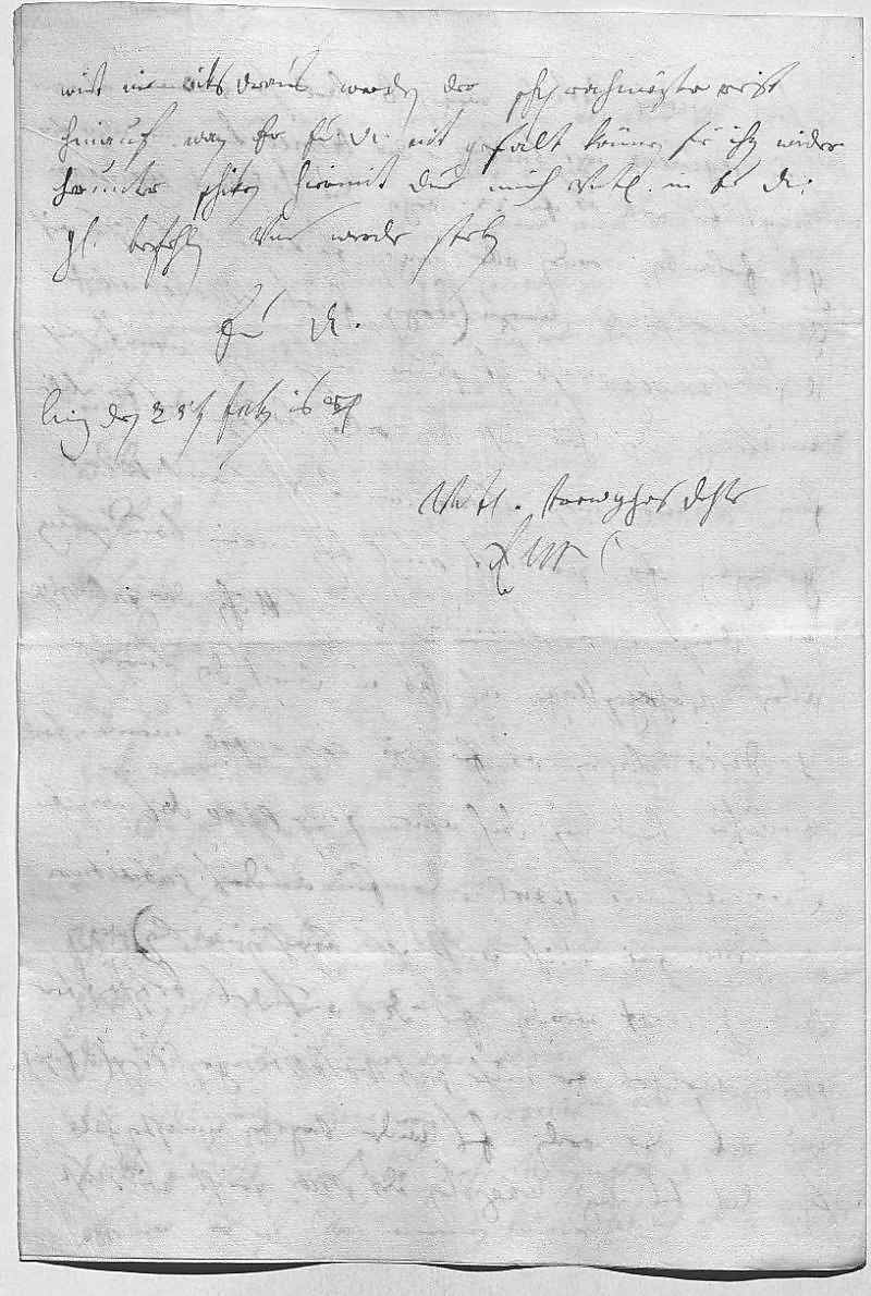 0058wirt nie niks draus werden. Der schprachmeister reist 0059hinauf, wan er ewer Durchlaucht nit gefalt, können sie ihn wider 0060herunter schiken. Hiermit due mich vnterdehnigst in ewer Durchlaucht 0061gnade befehlen vnd werde sterben 0062ewer Durchlaucht 0063vnterdehnigst trewgehorsamste dochter 0064EMT 0065Linz den 25ten julij 1684