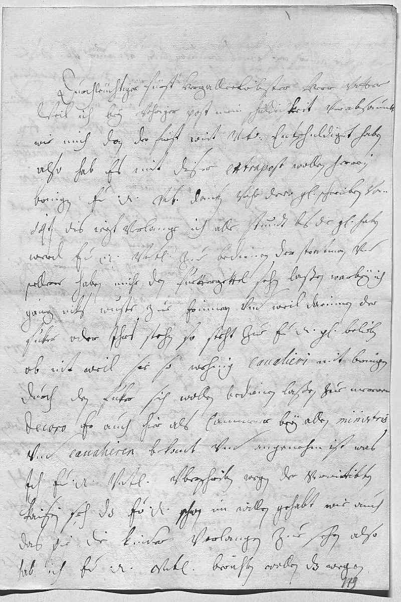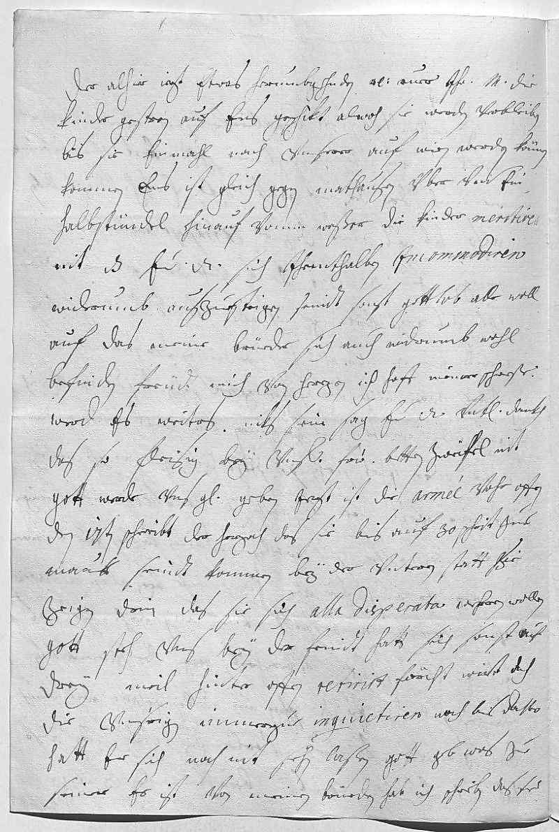 0001Durchleüchtiger Fürst, herzallerliebster herr vatter 0002Weil ich bey vohriger post mein schuldichkeit verabsaumbt, 0003wie mich dan der Fürst wirt vnterdehnigst entschuldiget haben, 0004also hab es mit diser extrapost wollen herrein 0005bringen und ewer Durchlaucht vnterdehnigst danken vohr dero gnädiges schreiben vom 000614ten dis. Iezt verlange ich alle stundt, bis die gnade haben 0007werd ewer Durchlaucht vnterdehnigst zue bedienen. Der Stratman vnd 0008Schellerer haben mihr den fuetterzettel sehn laßen, warbey ich 0009ganz niks wuste zue erinnern. Vnd weil darinnen der 0010Fuker oder Ihrs stehn, so steht zue ewer Durchlaucht gnädigem belieben, 0011ob nit, weil sie so wehnig caualieri mit bringen, 0012durch den Fuker sich wollen bedienen laßen zue mereren 0013decoro, er auch hier als Cammerer bey allen ministris 0014vnd caualiren bekant vnd angenehm ist. Was 0015ich ewer Durchlaucht vnterdehnigst überschriben wegen der verwitibten 0016Kaiserin, seh, das ewer Durchlaucht schon in willen gehabt, wie auch, 0017das sie die kinder verlangen zue sehen. Also 0018hab ich ewer Durchlaucht vnterdehnigst berichten wollen, das wegen