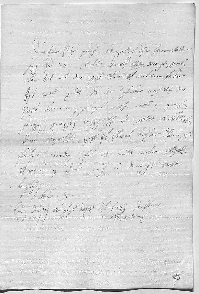 0001Durchleüchtiger Fürst, herzallerliebster herr vatter 0002Sag ewer Durchlaucht vnterdehnigsten dankh vohr dero gnädige schreiben 0003vom 28 mit der post vnd 30ten mit dem Fuker . 0004Ist woll gutt, das der Fuker noch vohr der 0005post kommen, sonst wehr woll in großen 0006sorgen geweßen wegen ihr Durchlaucht fraw mutter vebelaufsein. 0007Dem Leopoltl geht es etwas beßer, vom Grav 0008Fuker werden ewer Durchlaucht mitt mehrem gnädigst 0009vernemen. Due mich in dero gnade vnterdehnigst 0010befehlen 0011ewer Durchlaucht 0012vnterdehnigste dochter 0013EMT 0014Linz den 3ten august 1684