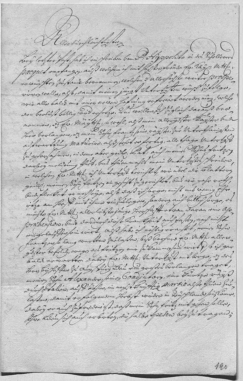 Gratuliert EMT zur Schwangerschaft, über die ihn Pater Ippolito informiert hat. – PWs Sohn Franz (Ludwig), dessen Reise nach Wien Kaiser Leopold I. wünscht, steht bereit; sein Sohn Fritz (Friedrich Wilhelm) hingegen ist durch die Blattern noch so verunstaltet, dass der Vater ihn ungern schicken würde. – Der Bischof von Augsburg wünscht, dass PWs Sohn Alexander (Sigismund) als sein Koadjutor nach Italien reist und Fritz ihn begleitet. Nach der Reise werden beide bei Hof wohl mehr Ehre einlegen, weshalb PW um die Zustimmung EMTs zu einer Verschiebung des Besuchs in Wien bittet.