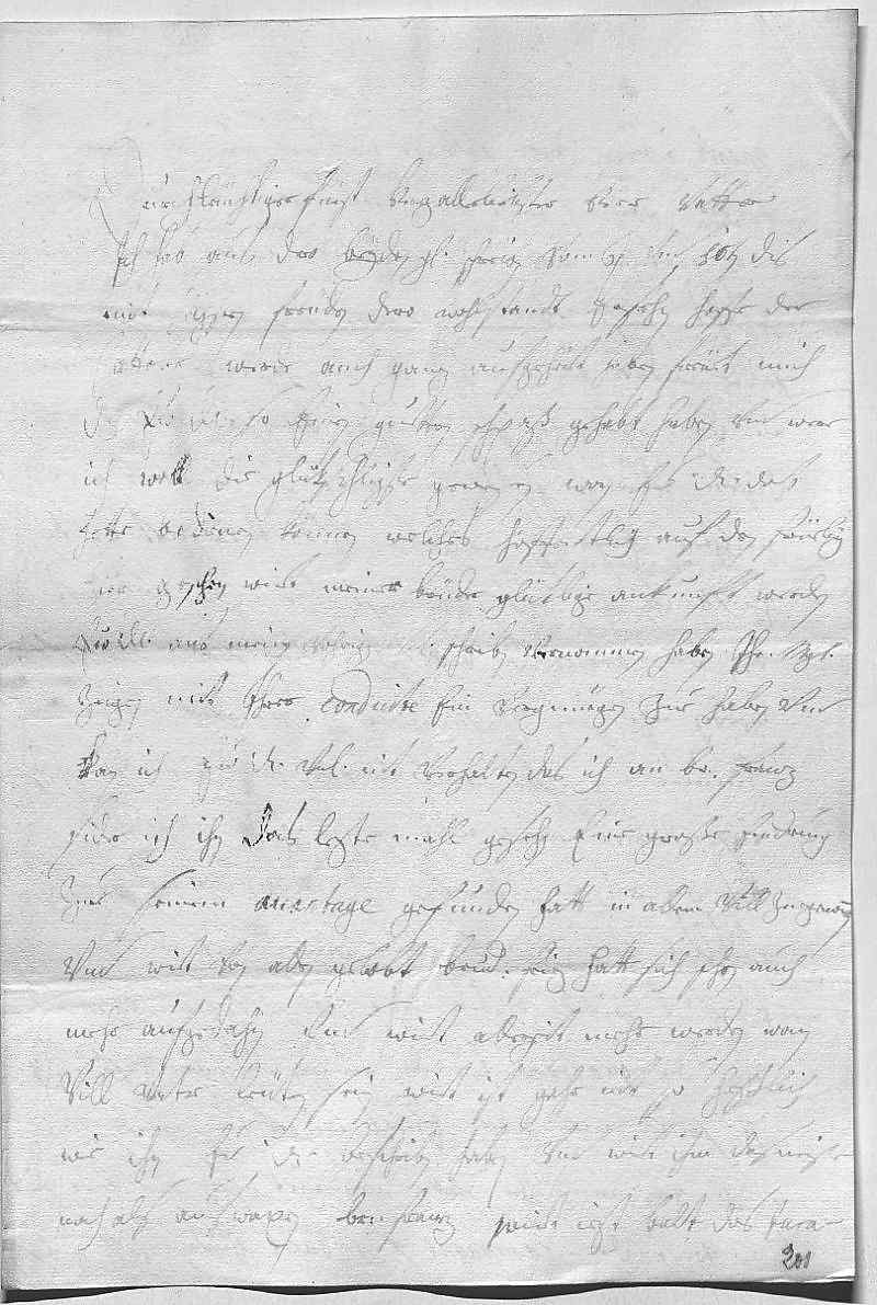 0001Durchleüchtiger Fürst, herzallerliebster herr vatter 0002Ich hab aus dero beyden gnädigen schreiben vom 6ten vnd 10ten dis0003mit höchsten freüden dero wohlstandt ersehn, hoffe der 0004cattarr werde auch ganz aufgehört haben. Freüet mich, 0005das ewer Durchlaucht so einen guetten schpaß gehabt haben, vnd were 0006ich woll die glüksehligste gewesen, wan ewer Durchlaucht dort 0007hette bedienen können, welches hoffentlich auf den früeling 0008hin geschen wirt. Meiner brüder glüklige ankunft werden 0009ewer Durchlaucht aus meinen vohrigen vnterdehnigsten schreiben vernommen haben. Ihr Mayestät 0010zeigen mit ihrer conduite ein vergnüegen zue haben. Vnd 0011kan ich ewer Durchlaucht vnterdehnigst nit verhalten, das ich an bruder Franz, 0012sider ich ihn das lezte mahl gesehn, eine große enderung 0013zue seinem auantage gefunden, hatt in allem vill zuegenommen 0014vnd wirt von allen gelobt. Bruder Friz hatt sich schon auch 0015mehr aufgedahn vnd wirt allezeit mehr werden, wan 0016vill vnter leüten sein wirt, ist gahr nit so heßlich, 0017wie ihn ewer Durchlaucht beschriben haben, vnd wirt ihm das meiste 0018noch als auswaxen. Bruder Franz wirt jezt balt das jura-