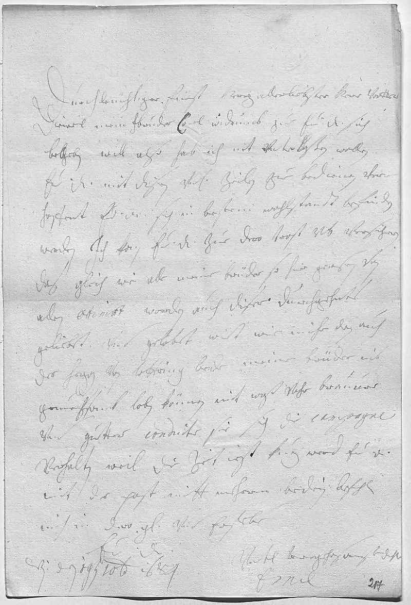 0001Durchleüchtiger Fürst, herz allerliebster herr vatter 0002Dieweil mein herr bruder Carl widrumb zue ewer Durchlaucht sich 0003begeben will, also hab ich nit vnterlaßen wollen 0004ewer Durchlaucht mit disen vnterdehnigsten zeilen zue bedienen, ver- 0005hoffendt, dass ewer Durchlaucht sich in bestem wohlstandt befinden 0006werden. Ich kan ewer Durchlaucht zue dero trost vnterdehnigst versichern, 0007das gleich wie alle meine brüder, so hier gewesen, von 0008allen estimirt worden, auch diser durchgehnts 0009geliebet vnd gelobet wirt, wie mihr dan auch 0010der Herzog von Lottring beide meine brüder nit 0011genuechsamb loben können, mit waß vohr brauuor 0012vnd gutter conduite sie sich die campagne 0013verhalten. Weil die zeit izt kurz, werd ewer Durchlaucht 0014mit der post mitt mehrerm bedienen, befehl 0015mich in dero gnade vnd ersterbe 0016ewer Durchlaucht 0017vnterdehnigst trewgehorsamste dochter 0018EMT 0019Wien den 19ten decembris 1684