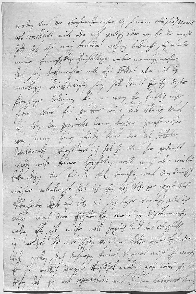 0020werden vnd der obristwachtmeister von seinem obristen an separirt 0021ort comendirt wirt oder auf partey oder wan er die wacht 0022hatt, das also mein brueder wehnig bedient sein wurde. 0023Meine vnmasgeblige einfeltige weiber meinung wehre, 0024das sein hoffmeister woll ein soldat, aber nit in 0025würkligen kriegsdiensten sein soll, damit er ihn desto 0026fleisiger bedienen könne. Wan er entlich nuhr 0027from vnd ein guetter wirt, das übrige mues 0028er von den generales lernen. Beßer zwahr wehre, 0029wan man einen finden könt, der das soldaten 0030hantwerkh verstüent. Ich hab hin vnd her gedacht, 0031will mihr keiner beyfallen, will mich aber weiters 0032erkundigen vnd ewer Durchlaucht vnterdehnigst berichten. Was den Deütsch 0033Meister anbelangt, hab ich schon bey vohriger post vnterdehnigst 0034vberschriben, das ewer Durchlaucht die sag beßer verstehen als ich, 0035also nach dero höchsterleüchten meinung dises machen 0036wollen. Es ist mihr woll herzlich leid das vnglükh, 0037in welches er mit schpilen kommen, bitte aber ewer Durchlaucht 0038vnterdehnigst, sie wollen doch deswegen keine vngnad auf ihn werfen. 0039Er ist redlich darzue verführt worden, gott wirt schon 0040helfen, das er mit repatation aus diesem labirint komen