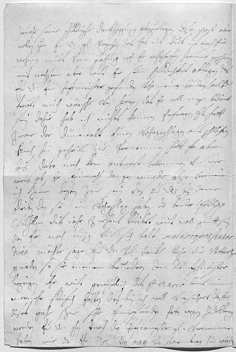 0020dauohr seine schuldigste dankhsagung abzuelegen. Dise post aber 0021wollen ihm ewer Durchlaucht gnädig vergeben, das ers nit duet, ist noch ein 0022wehnig müet vom fasching, woh er rechtschaffen herumb geschprungen, 0023mit nechstem aber wirt er sein schuldichkeit ablegen. Das 0024ewer Durchlaucht ein Hoffmeister gefunden vohr meinen brudern Carl Liebden 0025frewet mich, wönsche von herzen, das er woll möge bedient 0026sein. Dahie hab ich nichts können erfragen. Es hatt 0027zwar der Dünewalt einen vohrgeschlagen aus Schlesien, 0028auch hin geschrieben zue vernemmen, hatt ha aber 0029bis dato noch kein antwort bekommen vnd wer 0030weis, ob er einmahl daugen wurde. Also vermein 0031ich zum besten zue sein, das ewer Durchlaucht bey deme 0032bleiben, den sie im vohrschlag haben. Das bruder Pfilipp 0033Wilhelm dis iahr zuehaus bleibet, wirt woll guett sein, 0034dan er noch iung vnd sich balt malapropos hasar- 0035diren möchte. Sage ewer Durchlaucht vnterdehnigsten dankh vohr die vätterlige 0036gnaden, so sie meinem bruedern, dem Deütschmeister, 0037bezeigen. Er wirt gewißlich des Pater Marco bus imm- 0038mermehr fleisich halten, des bin ich woll versichert, dan er 0039dises gahr zue sehr empfunden hatt. Wegen Heidelberg 0040werden ewer Durchlaucht schon durch den Hoffcanzler gnädigst vernommen 0041haben, wie das ihr Mayestät den Max von Starenberg hin werden