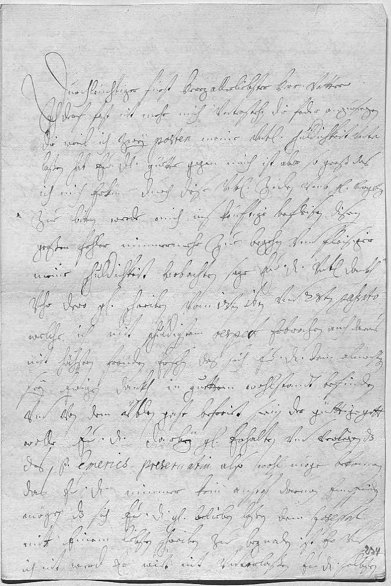 0001Durchleüchtiger Fürst, herz allerliebster herr vatter 0002Ich derf fast nit mehr mich vnterstehn die feder anzuesezen, 0003die weil ich zwey posten meine vnterdehnigste schuldichkeit vnter- 0004laßen hab. Ewer Durchlaucht güette gegen mich ist aber so groß, das 0005ich mich erküne, durch diese vnterdehnigsten zeilen vmb gnädige vergebung 0006zue bitten. Werde mich ins könftige befleisen, disen 0007großen fehler nimmermehr zue begehn vnd fleisiger 0008meine schuldichkeit beobachten. Sage ewer Durchlaucht vnterdehnigsten dankh 0009vohr dero gnädige schreiben vom 13ten, 16ten vnd 23ten passato, 0010welche ich mit schuldigstem respect erbrochen, auch daraus 0011mit höchsten freüden ersehn, das sich ewer Durchlaucht, dem almechtigen 0012sey ewiger dankh, in guettem wohlstandt befinden 0013vnd von dem üblen gast befreiet sein, der güettige gott 0014wolle ewer Durchlaucht darbey gnädig erhalten vnd verleyen, das 0015des Pater Emerics preseruation also wohl möge bekomen, 0016das ewer Durchlaucht nimmer kein anstos daruon empfünden 0017mögen. Das sich ewer Durchlaucht gnädigst belieben laßen, dem Josephl 0018mitt einem liebsten schreiben zu begnaden, ist er vnd 0019ich nit werd. Er wirt nit vnterlaßen, ewer Durchlaucht selbsten