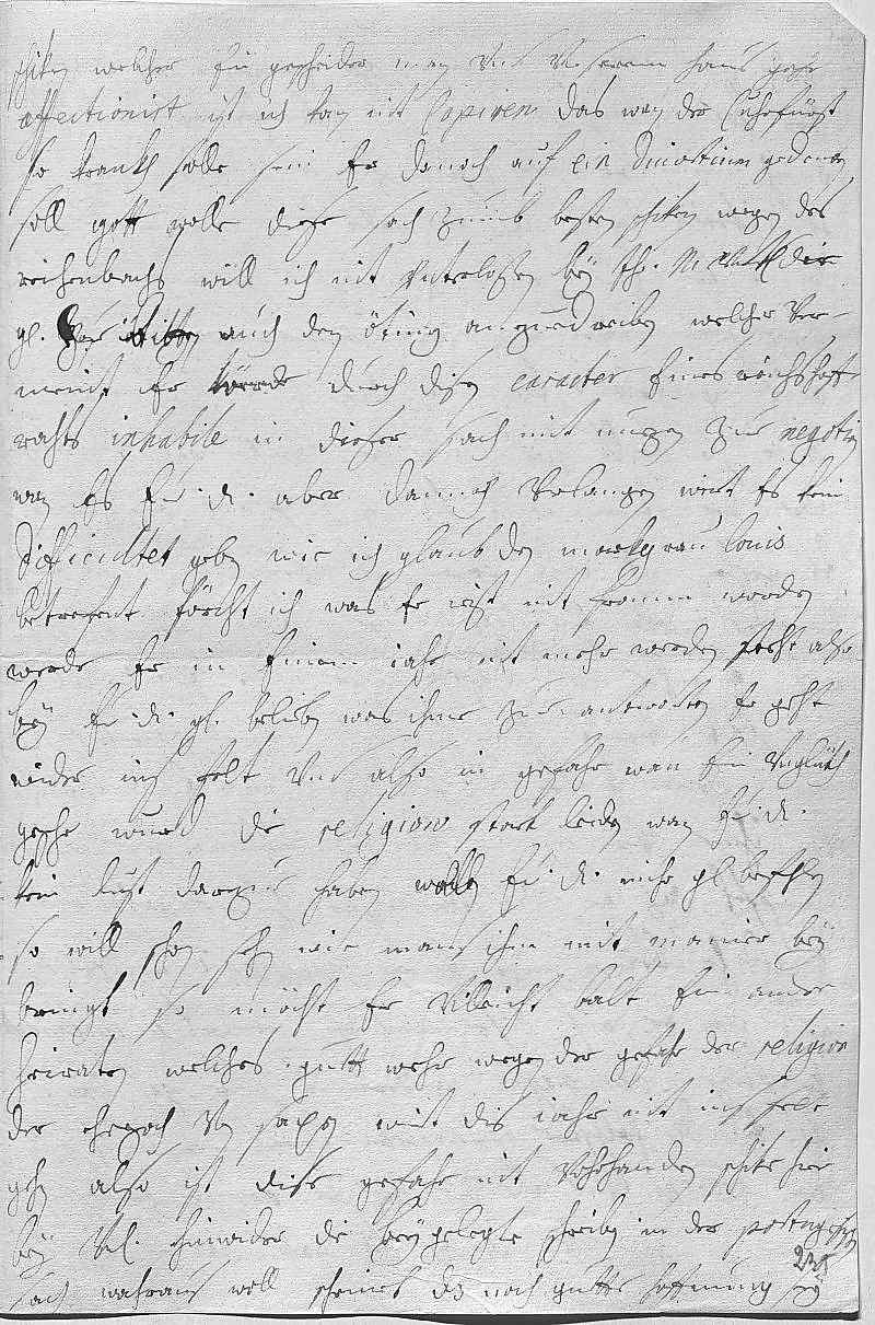 0042schiken, welcher ein gescheider man vnd vnserem haus gahr 0043affectionirt ist. Ich kan nit capiren, das wan der Cuhrfürst 0044so krankh solle sein, er danoch auf ein diuortium gedenken 0045soll, gott wolle diese sach zumb besten schiken. Wegen des 0046Reichenbachs will ich nit vnterlaßen, bey ihr Mayestät vnterdehnigst die 0047gnade zue bitten, auch den Öting anzuedreiben, welcher ver- 0048meint, er werde durch disen caracter eines Reichshoff- 0049rahts inhabile, in dieser sach mit nuzen zue negotiren. 0050Wan es ewer Durchlaucht aber dannoch verlangen, wirt es kein 0051difficultet geben, wie ich glaub. Den Markgrau Louis 0052betrefent förcht ich, was er iezt nit fromm worden, 0053werde er in einem iahr nit mehr werden, steht also 0054bey ewer Durchlaucht gnädigstem belieben, was ihme zue antworten. Er geht 0055wider ins felt vnd also in gefahr, wan ein vnglükh 0056gesche, wurd die religion stark leiden. Wan ewer Durchlaucht 0057kein lust darzue haben, wollen ewer Durchlaucht mihr gnädigst befehlen, 0058so will schon sehn, wie mans ihm mit manier bey 0059bringt, so möcht er villeicht balt ein andre 0060heiraten, welches guett wehr wegen der gefahr der religion. 0061Der Herzoch von Saxen wirt dis iahr nit ins felt 0062gehn, also ist dise gefahr nit vohrhanden. Schike hier 0063bey vnterdehnigst hinwider die beygelegte schreiben in der portugesischen 0064sach, wahraus woll scheinet, das noch guette hoffnung sey,