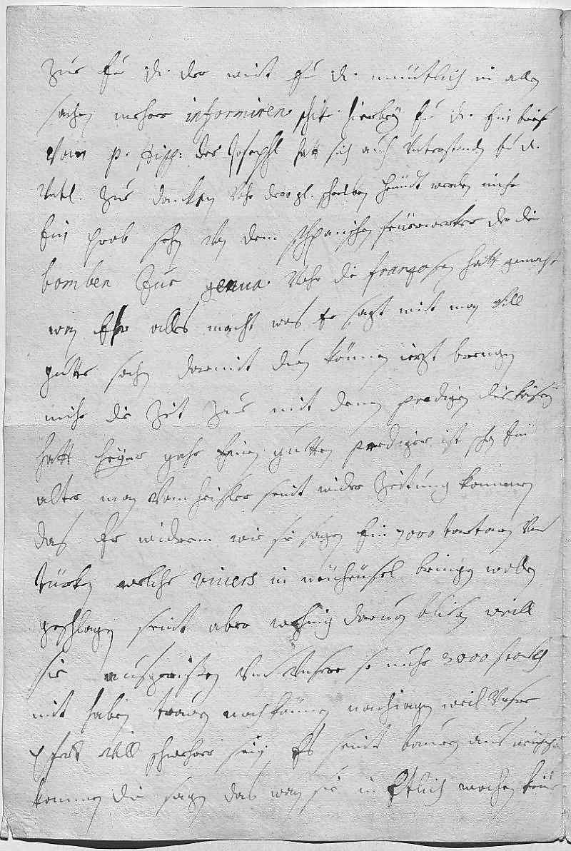 0018zue ewer Durchlaucht, der wirt ewer Durchlaucht müntlich in allen 0019sachen mehrer informiren. Schike hierbey ewer Durchlaucht ein brief 0020vom Pater Hippolito . Der Josephl hatt sich auch vnterstanden, ewer Durchlaucht 0021vnterdehnigst zue danken vohr dero gnädiges schreiben. Heündt werden mihr 0022ein prob sehn von dem schpanischen feüerwerker, der die 0023bomben zue Genua vohr die franzosen hatt gemacht, 0024wan ehr alles macht, was er sagt, wirt man vill 0025guette sachen darmit duen können. Iezt bringen 0026mihr die zeit zue mit denen predigen, die Kaiserin 0027hatt heyer gahr einen guetten prediger, ist schon ein 0028alter man. Vom Heiseler seint wider zeitung kommen, 0029das er widrem wie sie sagen ein 7000 tartarn vnd 0030türken, welche viuers in Neüheüsel bringen wollen, 0031geschlagen. Seint aber wehnig daruon blieben, weill 0032sie ausgerißen vnd vnsere, so nuhr 2000 starkh, 0033nit haben trawen noch können nachiagen, weil vnsre 0034pfert vill schwehrer sein. Es seint bauren aus Neüheusel 0035kommen, die sagen, das wan sie in etlich wochen keine