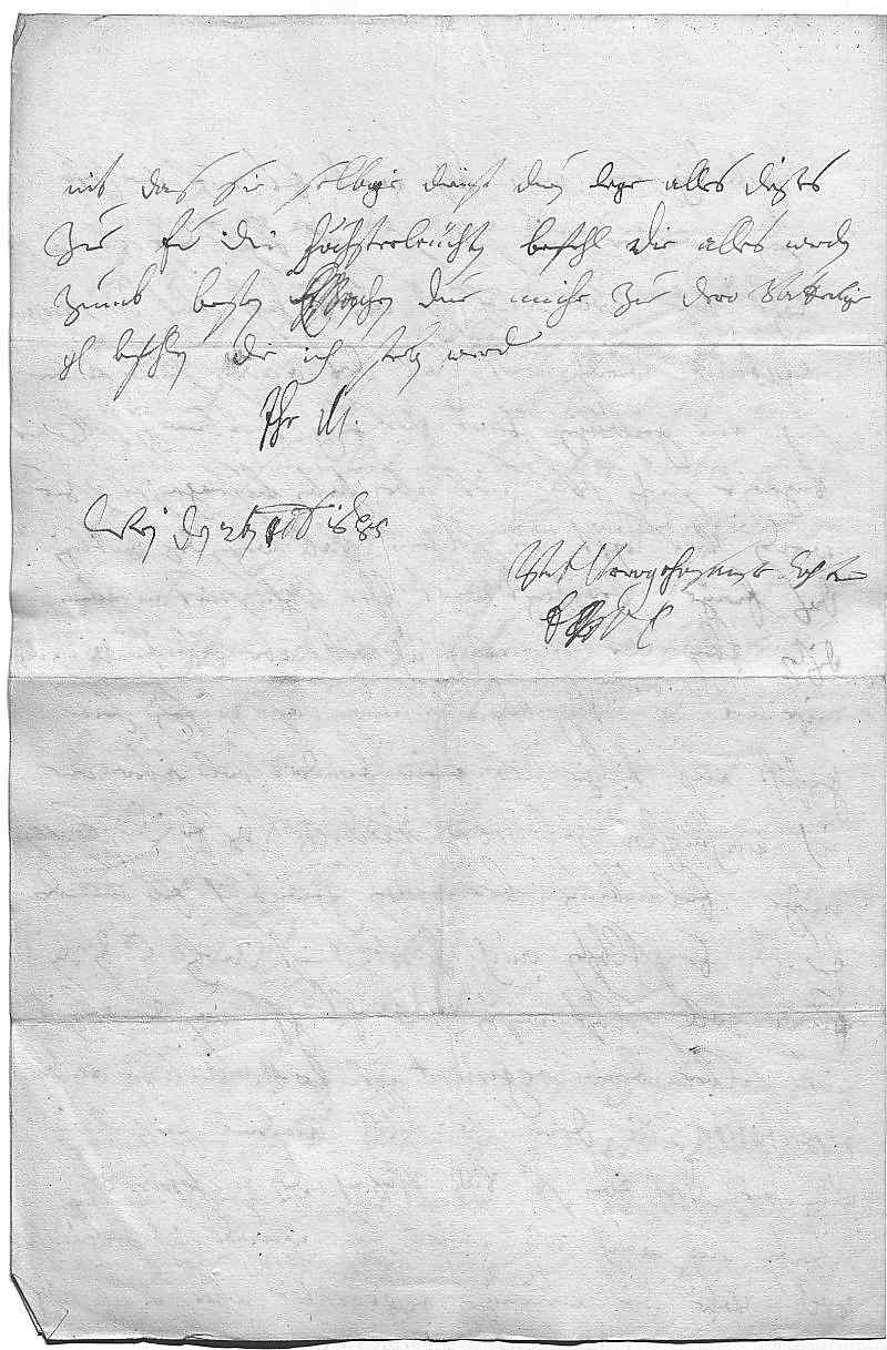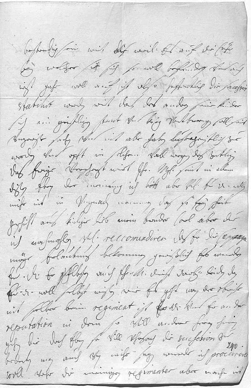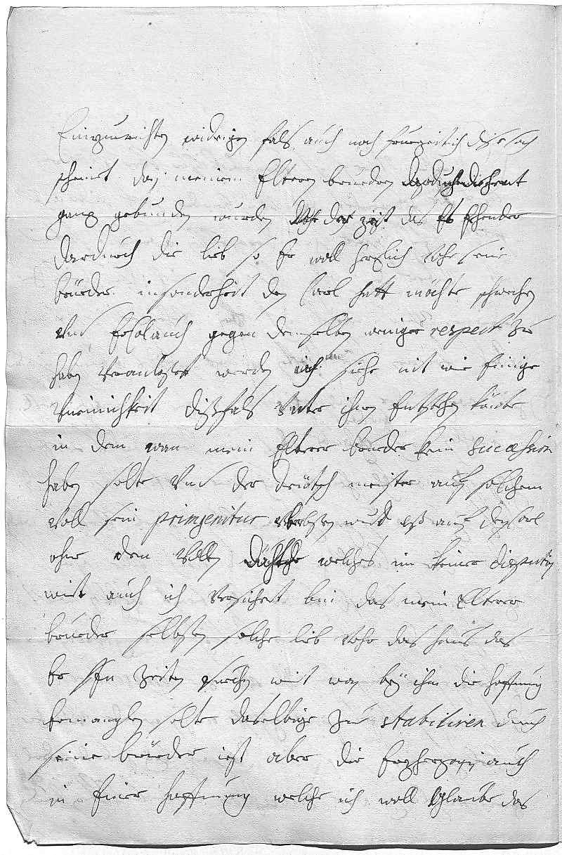 0036bestendig sein wirt, die weil es auf die cuhr folgt, 0037bey welcher sie sich so woll befunden vnd auch 0038izt gahr woll auf ist, also hoffentlich die sacession 0039stabilirt werden wirt. Das des andren seine kinder 0040sich im geistligen stant vnd krieg vnterbringen soll, seint 0041vngewiße sachen, vnd nit alle haben lust geistlich zue 0042werden vnd offt in solchem vall wegen des zeitligen 0043das ewige verscherzt wirt. Ihr Mayestät seint in allem 0044dißen eben der meinung. Ich bitt aber vnterdehnigst, ewer Durchlaucht wollen 0045mihr nit in vngnaden nemmen, das so frey schreib, 0046geschicht aus kintliger lieb. Mein bruder Carl aber due 0047ich nochmahlen vnterdehnigst reccomendiren, das er die campagne 0048möge erlaubnus bekommen gewißlich, denn es wurden 0049ewer Durchlaucht, er selbsten, auch ihr Mayestät dienst darbey leiden, dan 0050ewer Durchlaucht woll selbst wißen, wie es geht, wan der Obriste 0051nit selber beim regiment ist, ewer Durchlaucht vnd er an der 0052reputation, in dem so vill andere heren hinein 0053gehen, die doch eben so vill vhrsach, die sucsesion zue 0054bedenken, man auch von mihr sagen würde, ich procurire 0055woll vohr die meinigen regimenter, aber mache nit