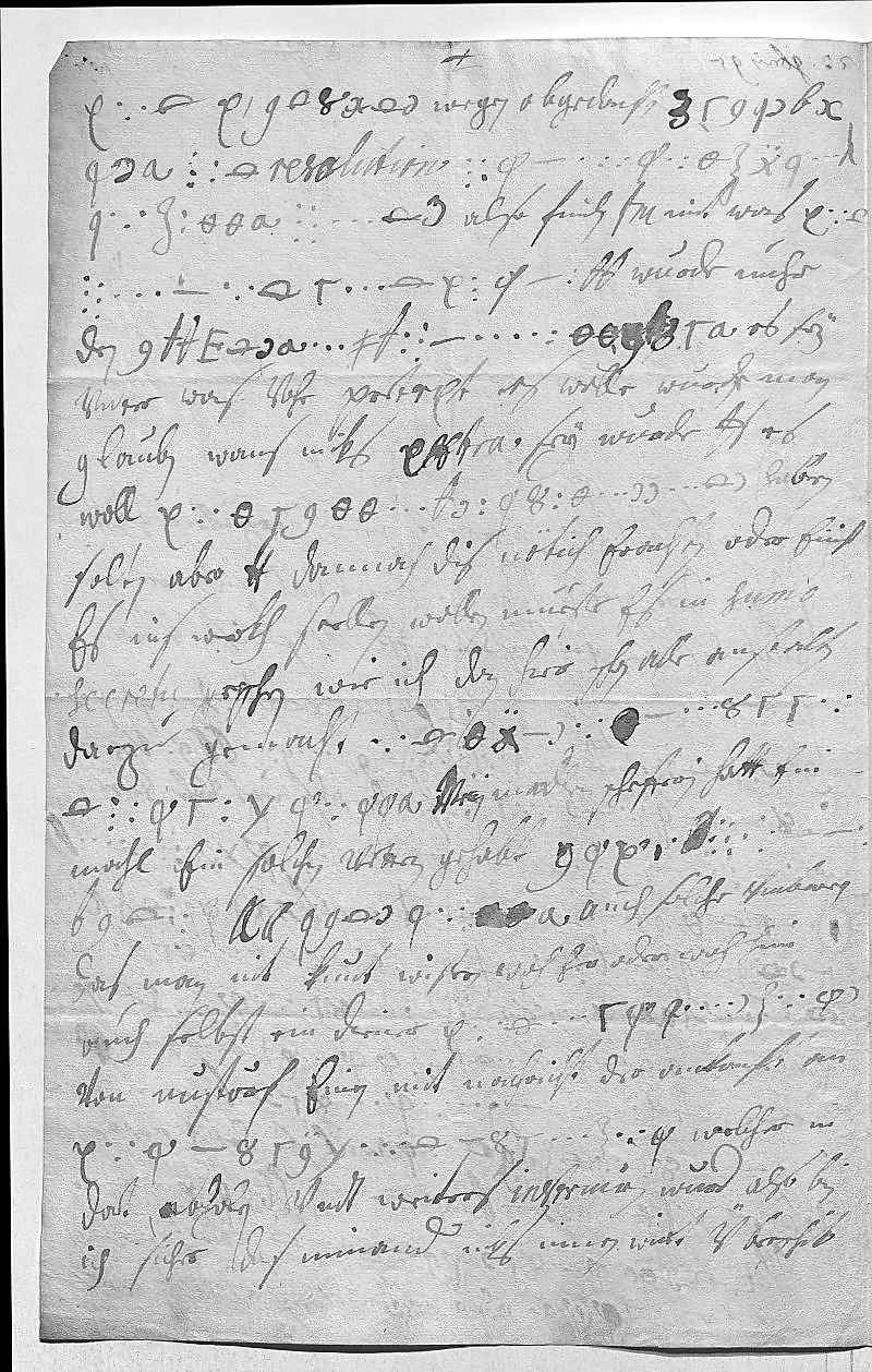 0018der d'Arcurt wegen obgedachten 3 haubt pu 0019ncten vor resolution von seinem Künig0020bekommen wirt. Also finden ihr Mayestät nit, was der0021Wiser hir dun soll, wurde nuhr 0022den allyrten ialousiem machen, es sey 0023vnter was vohr pretext es wolle, wurde man 0024glauben, wans niks extra sey, wurde dero Liebden es 0025woll dem Hammilton comissirt haben. 0026Solten aber dero Liebden dannoch dis nötich erachten oder einst 0027es ins werkh stellen wollen, müeste es in sumo 0028secretu geschen, wie ich dan hier schon alle anstalten 0029darzu gemacht. Er müste sich he0030r von Hof nennen, mein Madlen Schefferin hatt ein 0031mahl ein solchen vettern gehabt, ander weis0032paruk und bart nemmen, auch solche vmbweg, 0033das man nit kunt wißen, woh her oder woh hin, 0034auch selbst ein diener, der ihn nit kent, 0035von Nustorf einen mit nachricht der ankonft an 0036den Schäfer schiken, welcher in 0037dort abholen vndt weiters instruiren wurd. Also bin 0038ich sicher, das nimand niks innen wirt. Überschik