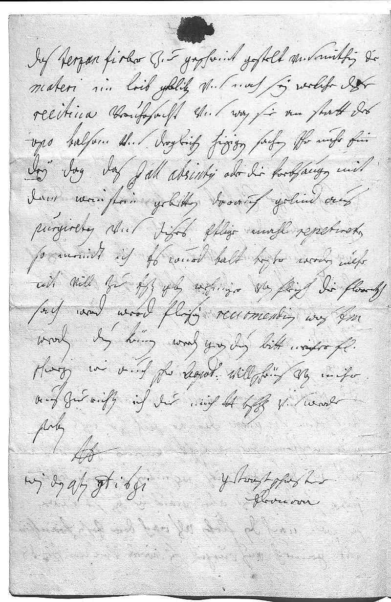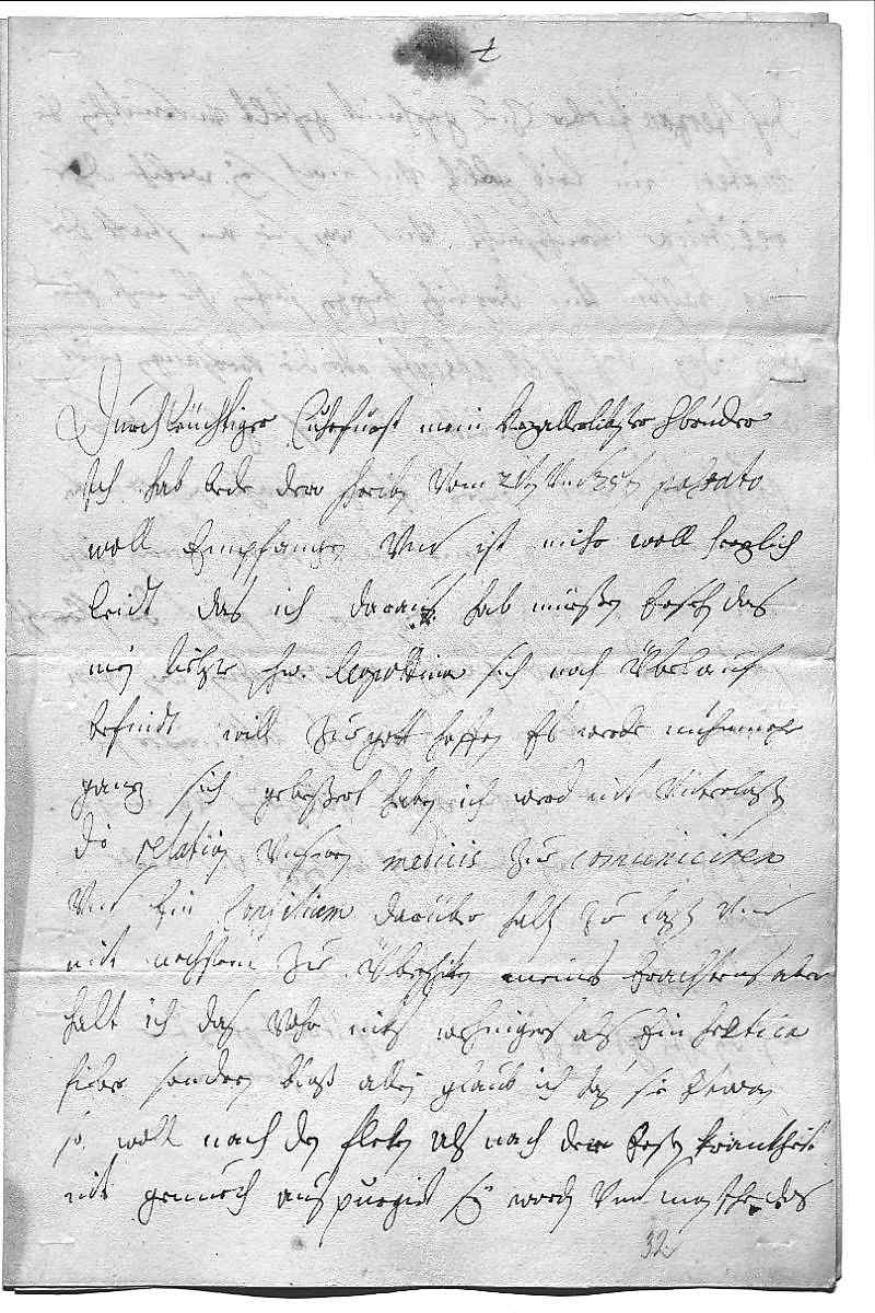 0001Durchleüchtiger Cuhrfürst, mein herzallerlibster herr bruder 0002Ich hab bede dero schreiben vom 21ten vnd 25ten passato0003woll empfangen, vnd ist mihr woll herzlich 0004leidt, das ich daraus hab müeßen ersehen, das 0005mein liebste schwester Lepoldina sich noch übelauf 0006befindt, will zue gott hoffen, es werde nuhmehr 0007ganz sich gebeßert haben. Ich werd nit vnterlaßen, 0008die relation vnseren medicis zue comuniciren 0009vnd ein consilium darüber halten zue laßen vnd 0010mit nechstem zue überschiken. Meines erachtens aber 0011halt ich das vohr niks wehnigers als ein hektica 0012fieber, sondern bloß allein glaub ich, das sie etwan 0013so woll nach den fleken als nach der ersten krankheit 0014nit genuech auspurgirt sey worden vnd man ihr das