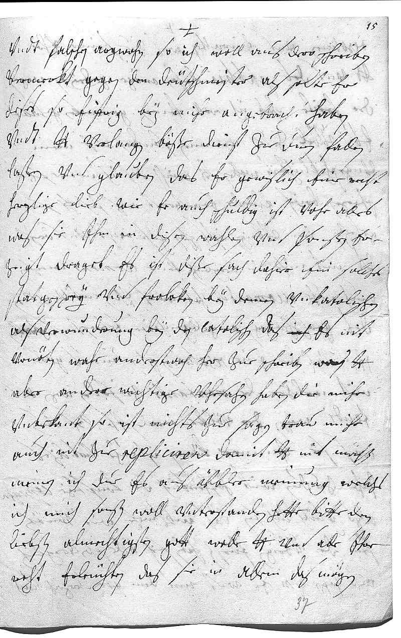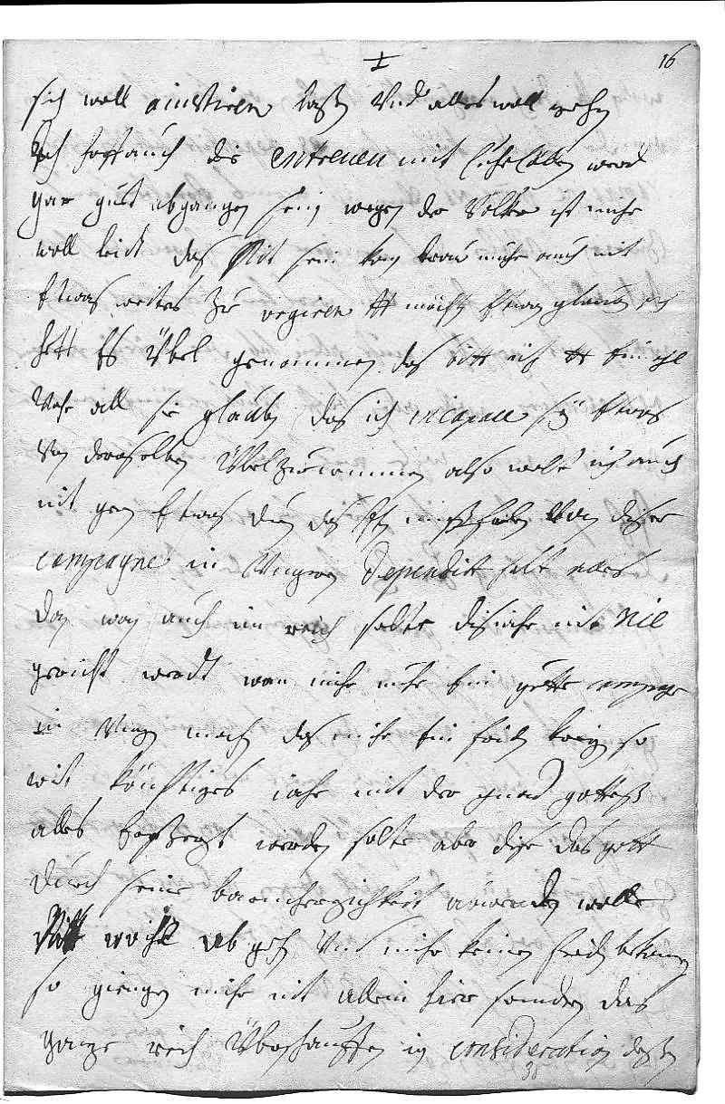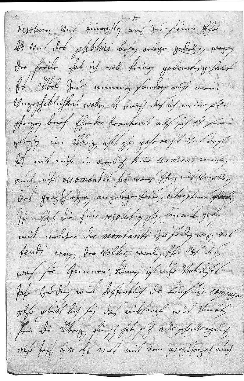 0031vndt falschen angwohn, so ich woll aus dero schreiben 0032vermerkt, gegen den Deütschmeister, als solte er 0033dieses so eiffrig bey mihr angebracht haben 0034vndt dero Liebden verlangen böße dienst zue duen, fallen 0035laßen vnd glauben, das er gewislich eine recht 0036herzlige lieb, wie er auch schuldig ist vohr alles, 0037was sie ihm in disen wahlen vnd sonsten er- 0038zeigt, draget. Es ist diße sach dahier ein solches 0039statgeschrey vnd froloken bey denen vnkatolischen 0040als verwunderung bey den catolischen, das ich es nit 0041vonöten wahr, anderstwoh her zue schreiben. Wan dero Liebden 0042aber andere wichtige vhrsachen haben, die mihr 0043vnbekant, so ist nichts zue sagen, traw mihr 0044auch nit zue repliciren, damit dero Liebden nit möchten 0045meinen, ich due es aus übler meinung, welchs 0046ich mich sonsten woll vnterstanden hette. Bitte den 0047liebsten almechtigsten gott, er wolle dero Liebden vnd alle ihre 0048reht erleüchten, das sie in allem das mögen