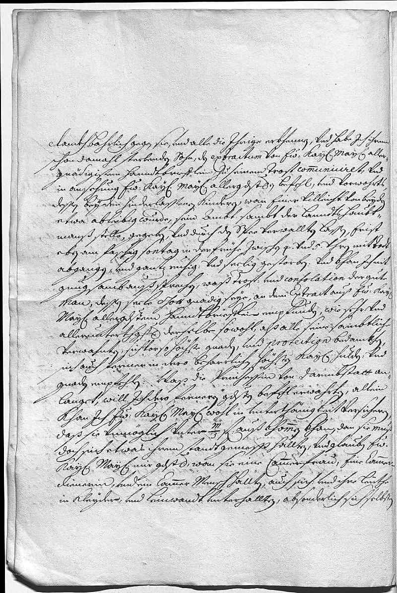 Entschuldigt sich für die verspätete Beantwortung von mehreren Briefen EMTs; dankt für die Entscheidung des Kaisers und EMTs Fürsprache. – Was die „bewusste geheime Sache“ angeht, so hat JW ähnliche Aufforderungen (vermutlich von der Mutter ) wie EMT erhalten, den D. S. (Doktor Schweizer) freizulassen und seine Ehre wiederherzustellen. Hat diesen durch seinen Gesandten Kreith in Regensburg verhören lassen. Der Doktor lügt aber und streitet alles ab; JW will ihn gefangen setzen, wird aber nichts ohne EMTs Vorwissen tun. – Hat den Kaltwasser bis auf Weiteres bei einer Abtei in Kost gegeben. – Freut sich über das Andauern der Schwangerschaften seiner beiden Schwägerinnen (Pfalzgräfin Luise Charlotte und Pfalzgräfin Anna Maria Franziska ) und von Schwester Liesel (Marie Sophie Elisabeth, Königin von Portugal ). Bittet EMT, dafür beten zu lassen, dass auch er einen gesunden, vernünftigen und beständigen Erben bekommt. – Wegen der Dienste, die die Frau von Zwiefel dem Kaiserpaar geleistet hat, wird JW immer auch deren Familie protegieren; ihrem sterbenden Sohn hat er einen Auszug aus einem Schreiben EMTs gezeigt. – Wenn die Prinzessin von Darmstadt heimlich von zu Hause wegginge, würde sie im ersten Jahr 3000 Gulden für ihre Ausstattung brauchen, in den folgenden Jahren könnten 2000 Gulden reichen; für ihre Verheiratung wäre der bayerische Kurfürst in Betracht zu ziehen. – Der Chance eines Friedenspaktes durch eine Ehe des römisch-deutschen Königs Joseph I. mit der dänischen Prinzessin stehen nicht nur die unsichere Dauer eines solchen Pakts, sondern auch die Gefahr einer möglichen Rekonversion der Prinzessin mitsamt den gemeinsamen Kindern entgegen, falls sie Joseph überleben würde. Schlägt Schwester Leopoldine Eleonore als die einzige katholische Kandidatin vor; sie wäre eine Schwiegertochter, die EMTs Autorität auch nach dem Tod Kaiser Leopolds I. nicht untergraben würde. – Hat gehört, Graf Caraffa habe sein Amt resigniert; bittet um weitere Unterstützung der beiden Anliegen des Großherzogs (Cosimo III. von Toskana) und seines eigenen (wohl bezüglich Einquartierungen). – Wegen des licianischen Lehens wäre eine allgemein gehaltene Erklärung besser als ausufernder Schriftverkehr.