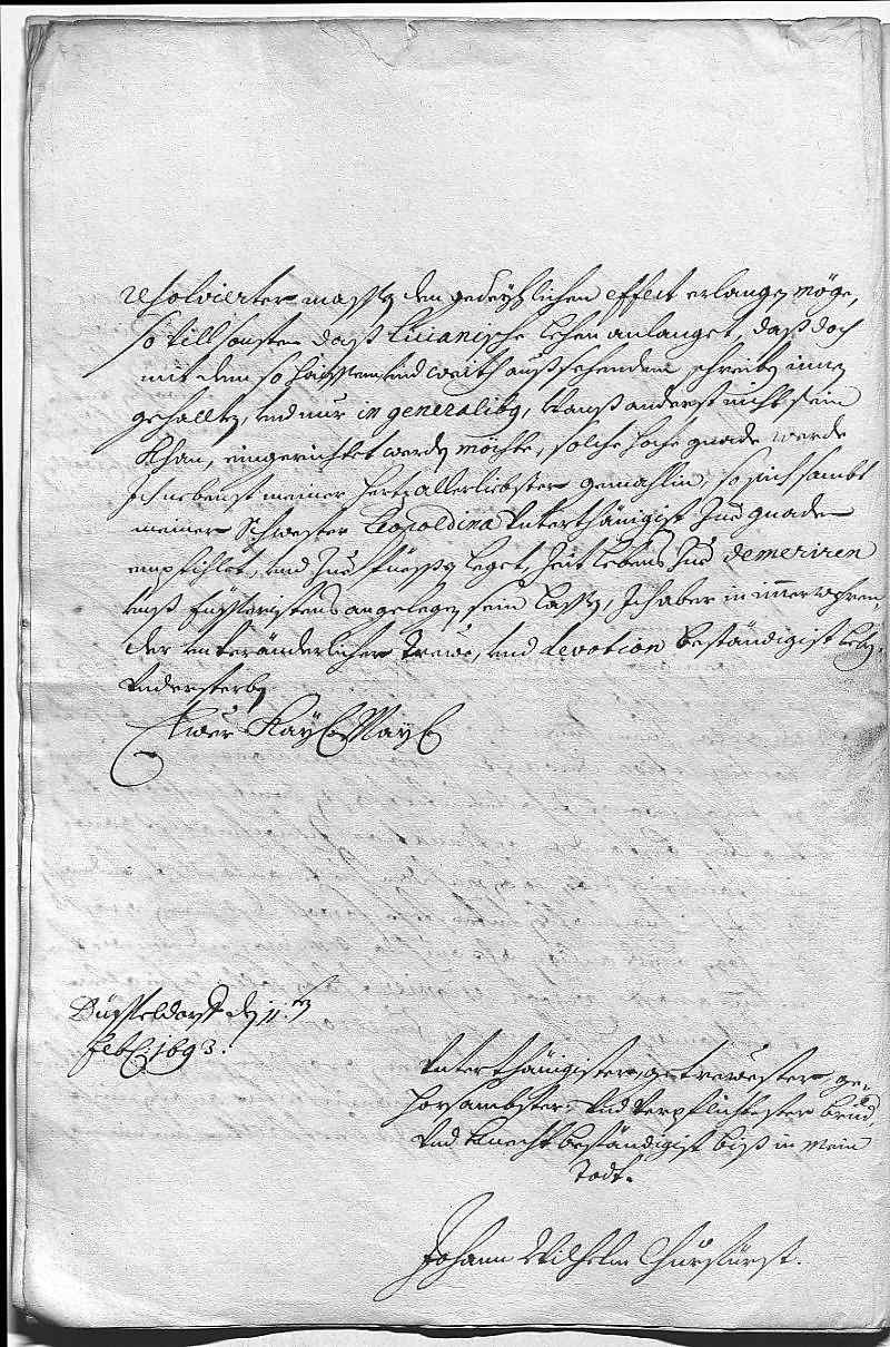 Johann Wilhelm von Pfalz-Neuburg an Eleonora Magdalena von Pfalz-Neuburg, Düsseldorf am 1693.02.11