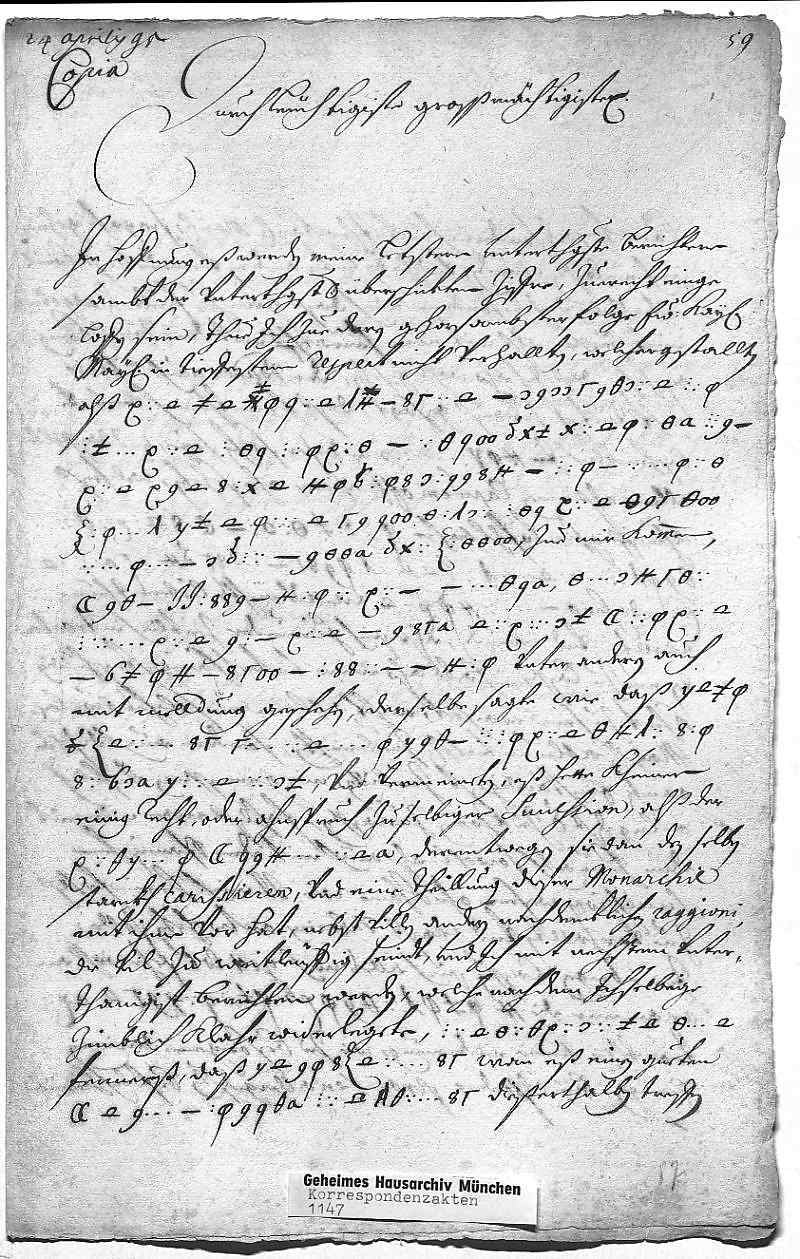 Bayerisches Hauptstaatsarchiv München, Geheimes Hausarchiv, Korrespondenzakten 1147
