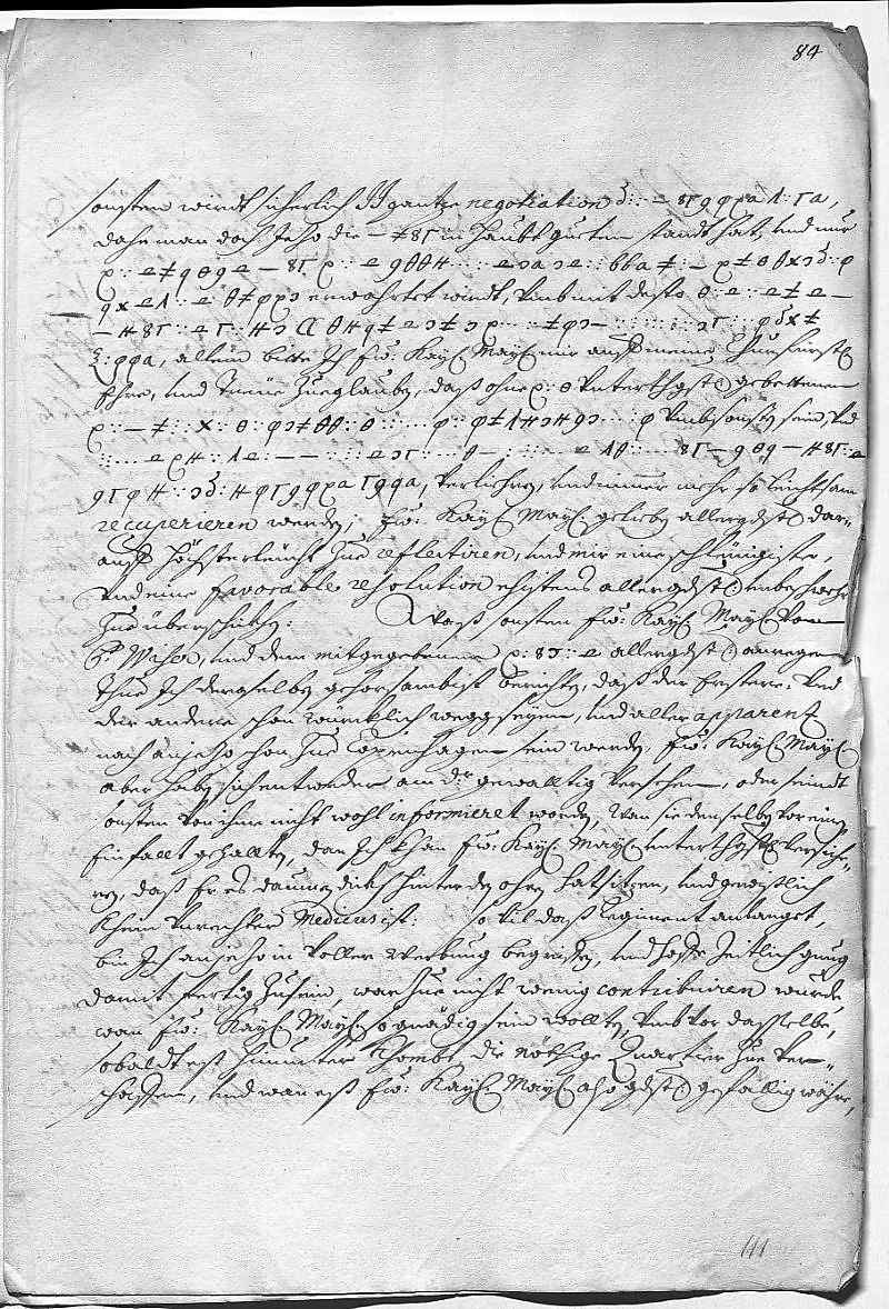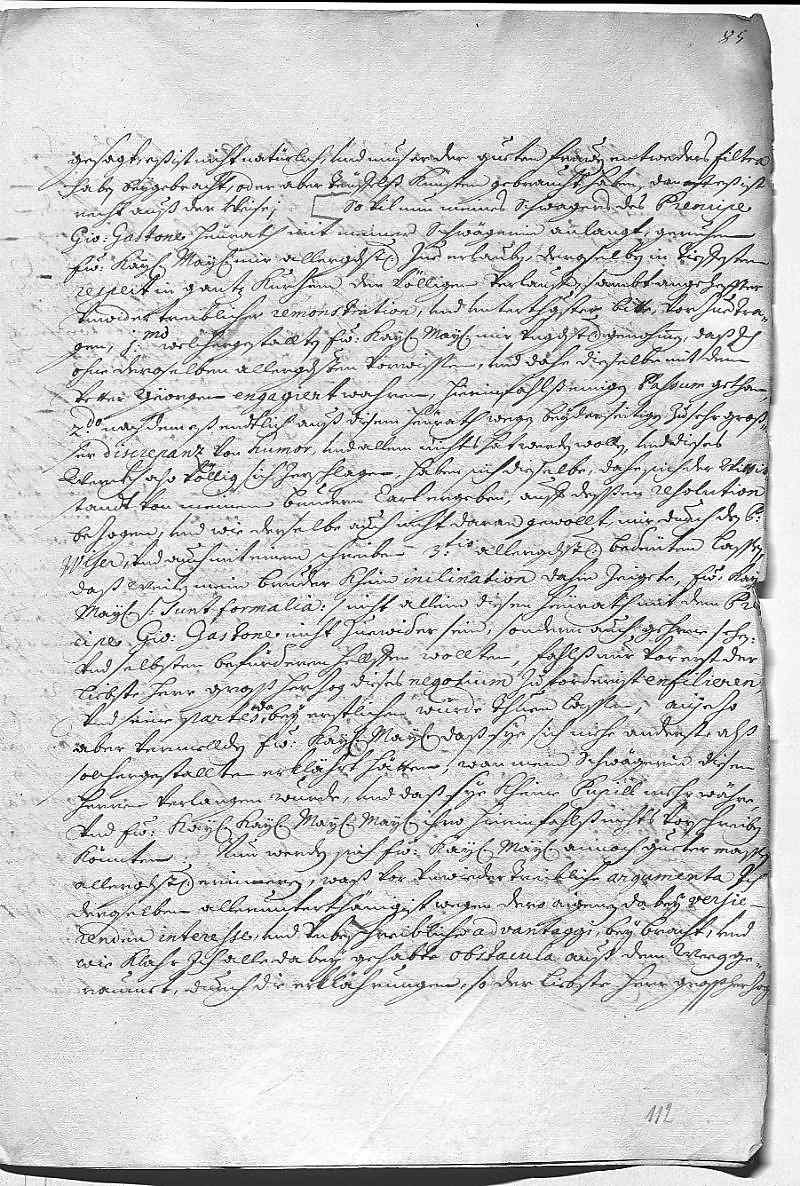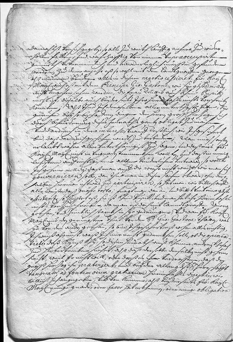 0121gesagt, eß ist nicht natürlich, vnd mus er der guten frawen entweder filtra 0122haben beygebracht, oder aber teüffelß künsten gebraucht haben, dan est eß ist 0123recht auß der weise. So vil nun meines schwagers des Prencipe 0124Giovanni Gastone heürath mit meiner schwägerin anlangt, geruhen 0125ewer kayserliche Mayestät mir allergnädigst zue erlauben, derselben in tieffsten 0126respect in gantz kurzem den völligen verlauff, sambt angeheffter 0127vnwidertreiblicher remonstration, vnd vnterthänigster bitte, vorzuetra- 0128gen, Primo welchergestallten ewer kayserliche Mayestät mir vngnädigst genohmmen, daß ich 0129ohne deroselben allergnädigsten vorwissen, vnd dahe dieselbe mit dem 0130vetter Georgen engagiert wahren, hierinfahlß einigen passum gethan, 0131Secundo nach dem eß endtlich auß disem heürath wegen beyderseitigen zu sehr groß- 0132ser discrepanz von humor, vnd allem nichts hat werden wollen, vnd dieses 0133werckh also völlig sich zerschlagen, haben sich dieselbe, dahe sich der wittib- 0134standt von meinem brudern Carl ergeben, auff dessen resolution 0135bezogen, vnd wie derselbe auch nicht daran gewollt, mir durch den Pater 0136Wiser, vnd auch mit einem schreiben Tertio allergnädigst bedeüten laßen, 0137daß weilen mein bruder khein inclination dahin zeigete, ewer kayserliche 0138Mayestät (sunt formalia) nicht allein disen heürath mit dem Pren- 0139cipe Giovanni Gastone nicht zuwider sein, sondern auch gehrne sehen- 0140vnd selbsten befürderen hellffen wollten, fahlß nur erst der 0141liebste herr Großherzog dieses negotium zu förderist enfilieren 0142vnd seine partes dabey erstlichen würde thuen lassen, anjezo 0143aber vermellden ewer kayserliche Mayestät, daß sye sich niehe anderste alß 0144solchergestallten erklährt hätten, wan mein schwägerin diesen 0145herren verlangen wurde, vnd daß sye kheine pupill mehr währe 0146vnd ewer kayserliche kayserliche Mayestät Mayestät ihro hierin fahlß nichts vorschreiben 0147könnten. Nun werden sich ewer kayserliche Mayestät annoch gueter massen 0148allergnädigst erinneren, waß vor vnwidertreibliche argumenta ich 0149deroselben allerunterthänigist wegen dero aigenen dabey versie- 0150renden interesse, vnd vnbeschreibliche advantaggi, bey bracht, vnd 0151wie klahr ich alle dabey gehabte obstacula auß dem weeg ge- 0152raumet, durch die erklährungen, so der liebste herr Grossherzog