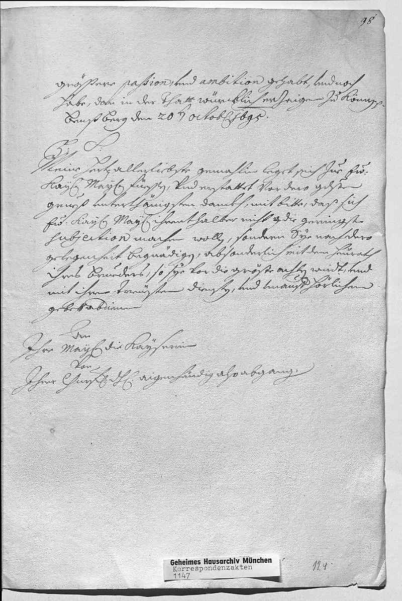 Bayerisches Hauptstaatsarchiv München, Geheimes Hausarchiv, Korrespondenzakten 1147